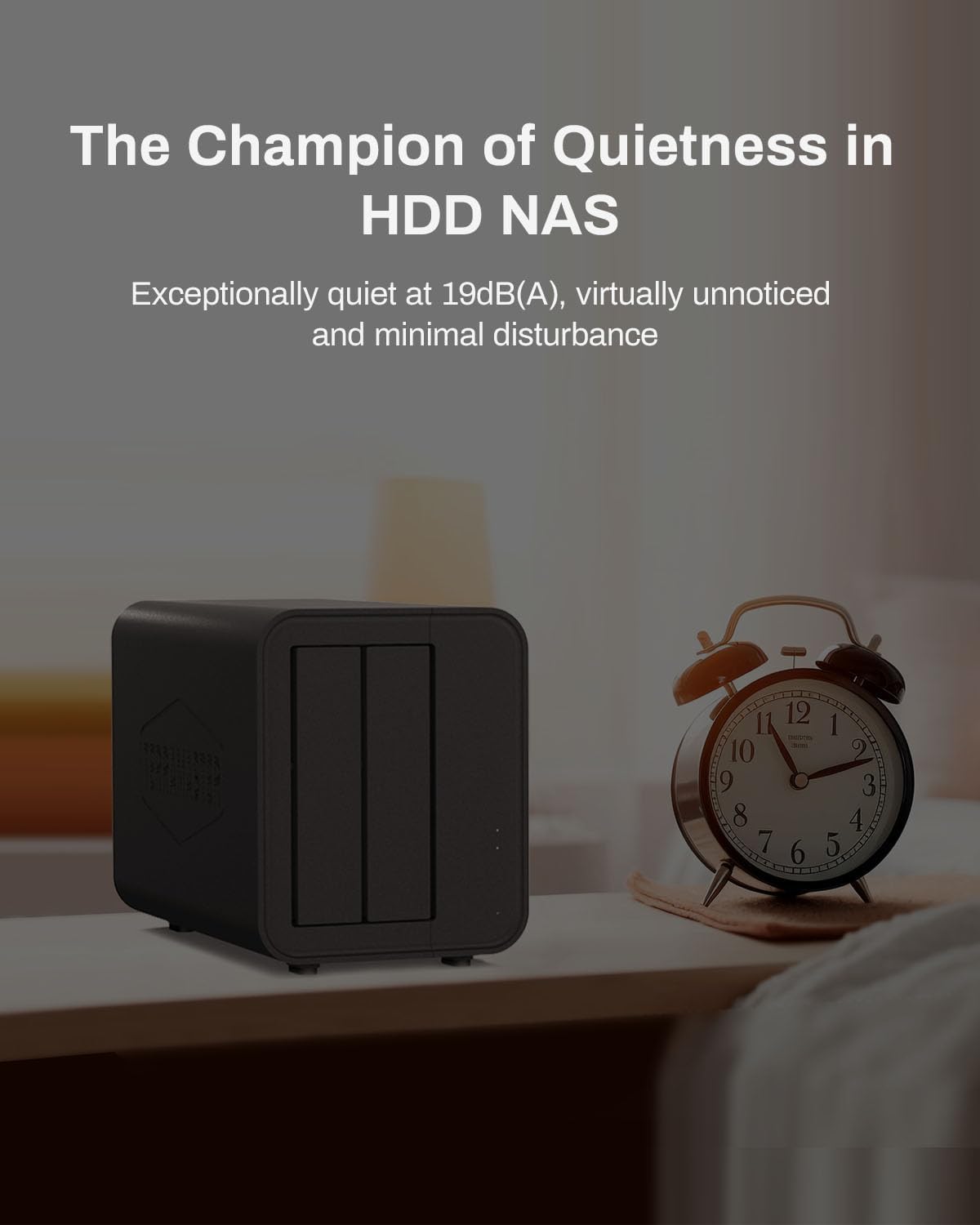 Test conditions: Using 2 SATA HDDs/SSDs in standby mode; Test environment noise: 17.3dB(A); Test distance: 1m